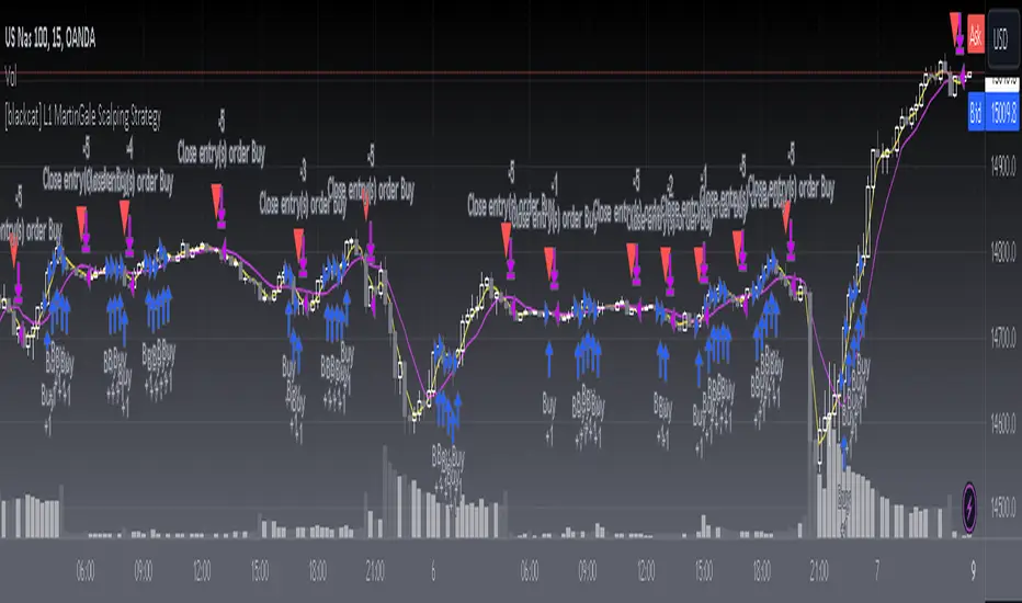 The MartinGale Scalping Strategy is a trading strategy designed to generate profits through frequent trades. It utilizes a combination of moving average crossovers and crossunders to generate entry and exit signals. The strategy is implemented in TradingView's Pine Script language.