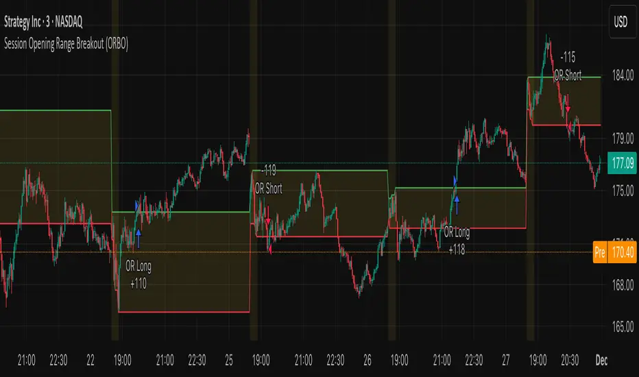 This strategy automates a classic Opening Range Breakout (ORBO) approach: it builds a price range for the first minutes after the market opens, then looks for strong breakouts above or below that range to catch early directional moves.