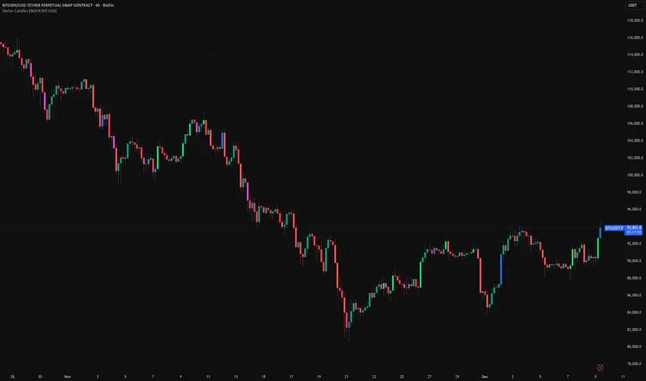 Vector Candles are special, color-coded candlesticks that highlight significant market activity, showing intense buying/selling (climax), institutional entry, momentum shifts, or potential reversals by analyzing high volume and large price ranges (spreads). They transform normal charts to instantly spot areas of extreme participation (bullish green/blue, bearish red/violet) versus standard conditions (gray), helping traders see market dynamics beyond just price.