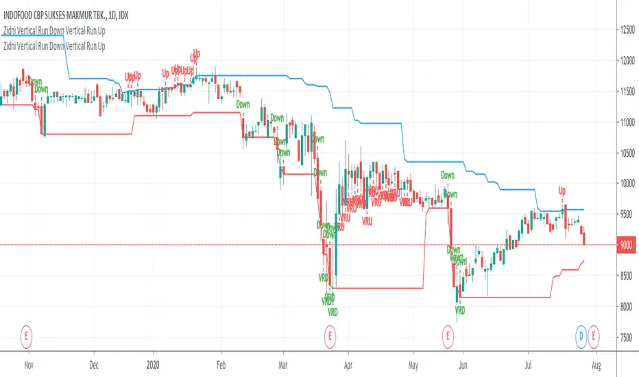 Vertical Run Down and Vertical Run Up based on Tom Bulkowski Chart Pattern with elaboration in percentage of the drop and up.