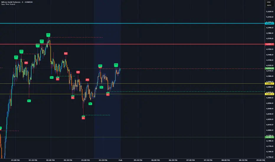 See The Trend is a simple market structure indicator that highlights higher highs, higher lows, lower highs, and lower lows—including pivot points—directly on the chart. By visually marking bullish and bearish structure, it helps traders quickly identify trend direction, momentum shifts, and potential reversals at a glance.
