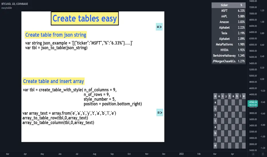 █ Create tables █ JSON To Table █ Change Colors █ Array to Rows/Columns █ Pre-Styles █ Change Text Size █ Delete Rows/Columns █ Blink Cells