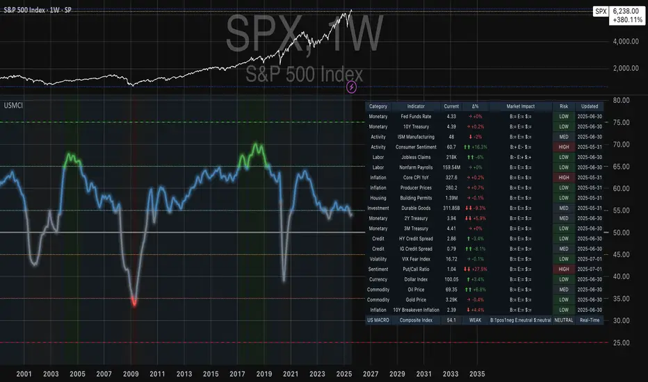 The indicator utilises Pine Script version 6 for implementation on the TradingView platform, incorporating real-time data feeds from Federal Reserve Economic Data (FRED), Bureau of Labour Statistics, and Institute for Supply Management sources. The architecture employs request.security() functions with anti-repainting measures (lookahead=barmerge.lookahead_off) to ensure temporal consistency in signal generation.