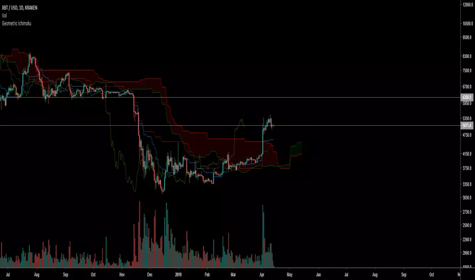 This version of the Ichimoku Cloud indicator uses the geometric mean rather than the arithmetic mean.