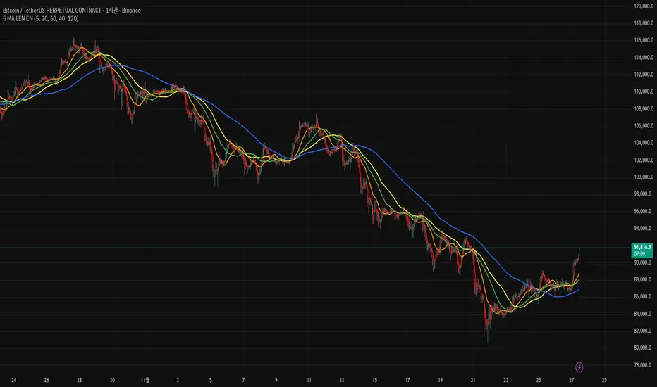 This indicator is a minimalist tool designed for pure trend visualization across five user-defined periods using Simple Moving Averages (SMAs). It contains no built-in signals or dynamic features—it serves strictly as a trend filter and confirmation layer.