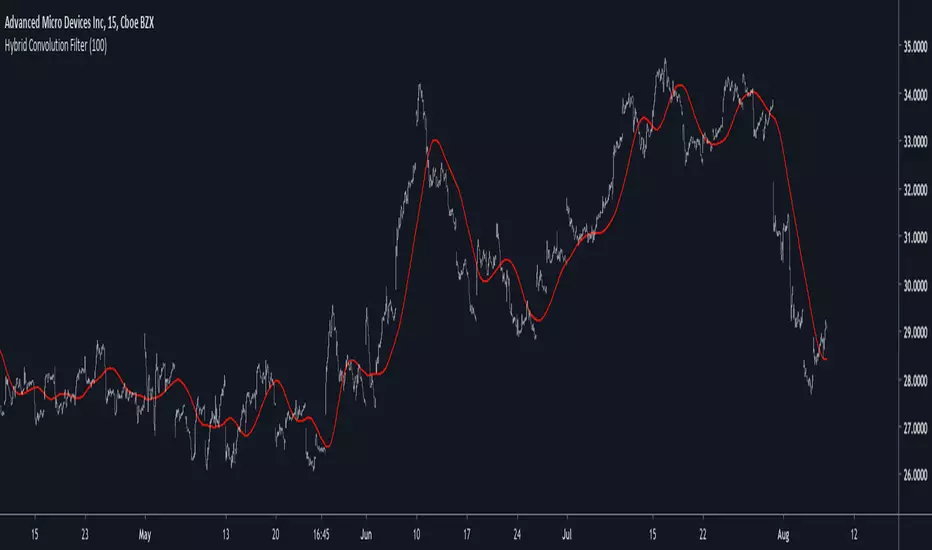 Today i propose an hybrid filter that use a classical FIR architecture while using recursion. The proposed method aim to reduce the lag generated by fir filters. This particular filter is a sine weighted moving average, but you can change it since the indicator is built with the custom filter template (1). Even if it use recursion it still is a FIR filter since the impulse response is finite.