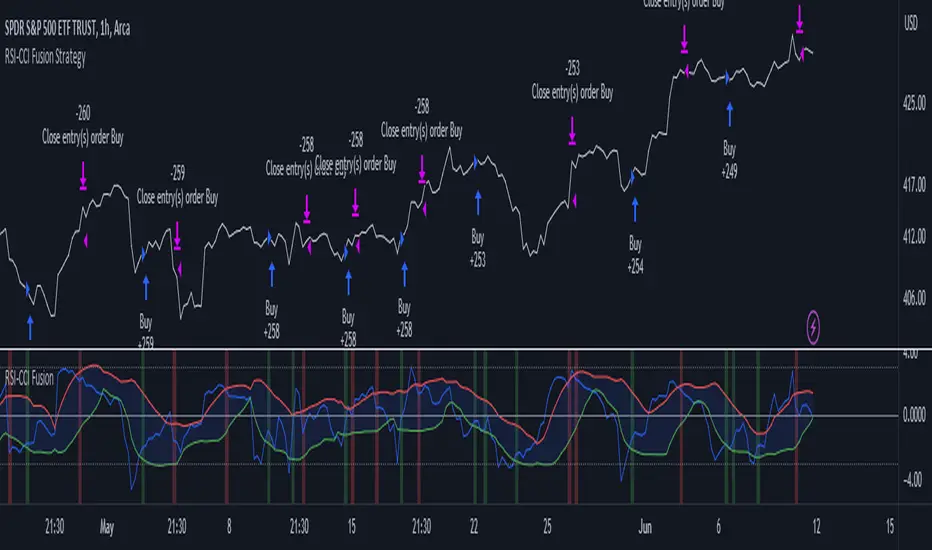 The "RSI-CCI Fusion Strategy" is a powerful trading approach that combines the strengths of the Relative Strength Index (RSI) and the Commodity Channel Index (CCI) to provide enhanced trading insights. This strategy is based on the popular "RSI & CCI Fusion + Alerts" indicator, which utilizes the RSI and CCI indicators from TradingView.