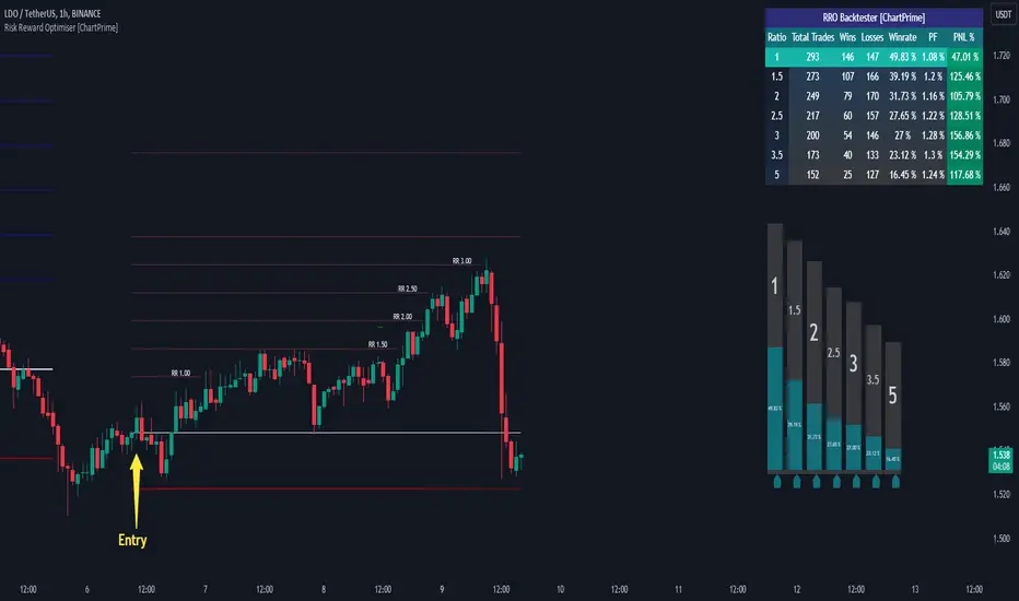 🔸 It includes a tooltip for each risk to reward ratio which gives data for the: