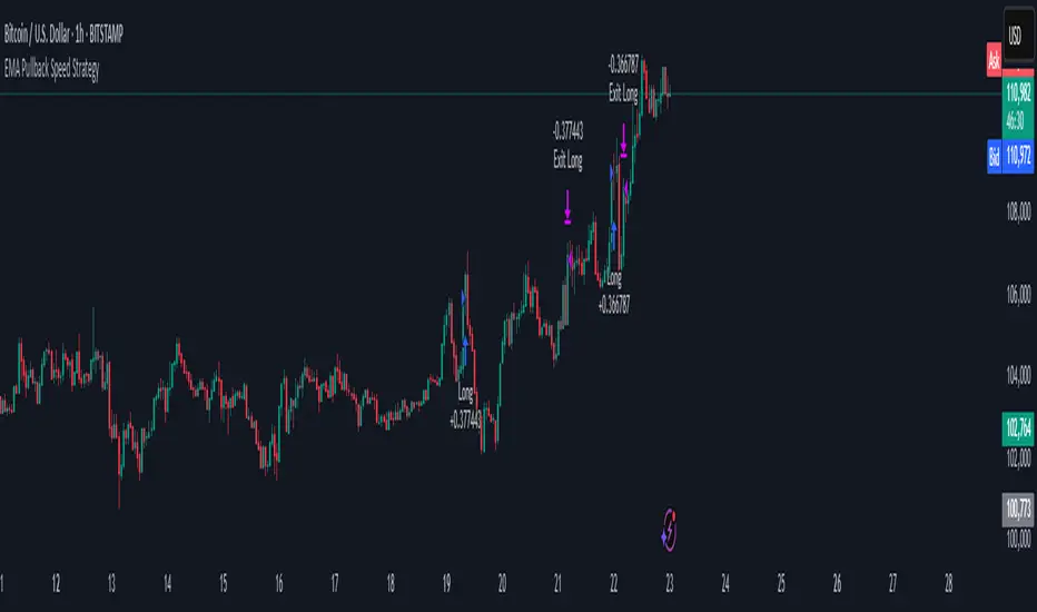 The **EMA Pullback Speed Strategy** is a trend-following approach that combines **price momentum** and **Exponential Moving Averages (EMA)**.