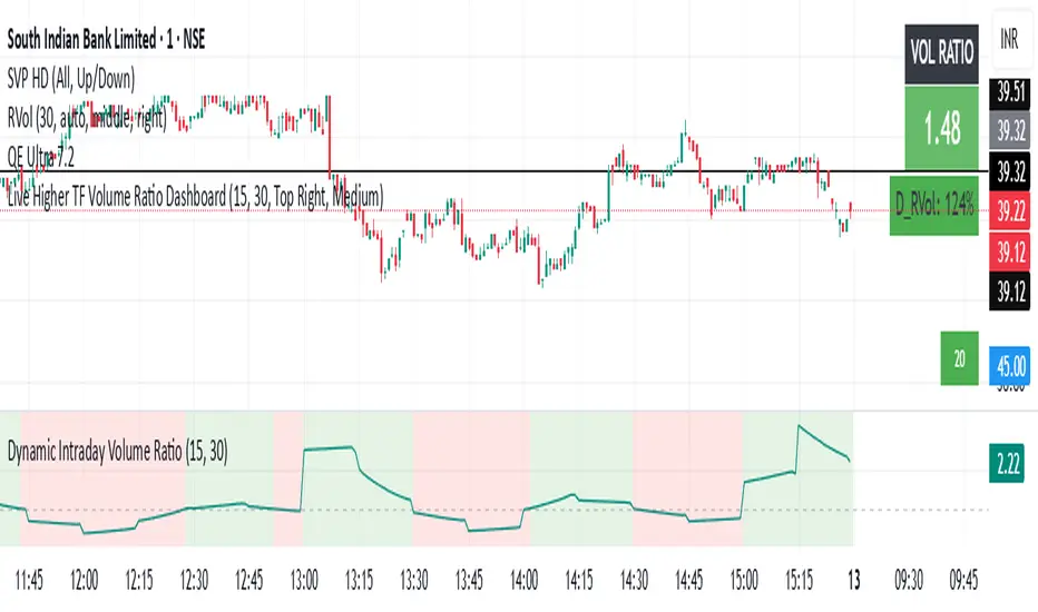 Comparative intraday volume dashboard for 15 mins volume in any intraday timeframe