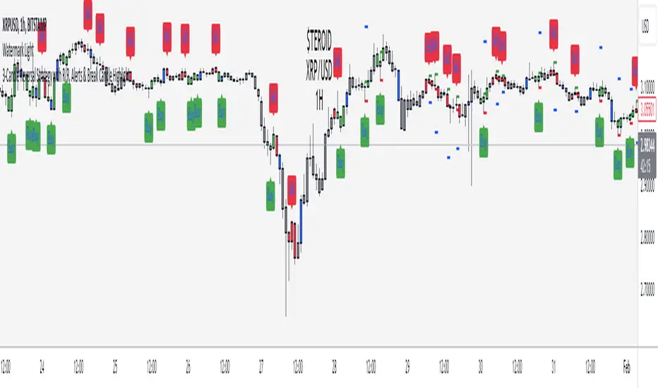 The "Steroid: 3-Candle Reversal Strategy with R/R & Alerts" indicator is designed to detect and highlight three-candle reversal patterns, which signal potential trend changes. This tool is versatile and highly effective, making it an essential addition to any trader's toolkit.