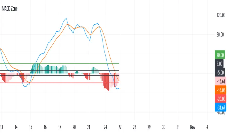 The MACD Zone Indicator is a custom technical analysis tool built to visualize market momentum by combining the MACD (Moving Average Convergence Divergence) with dynamic zone levels for enhanced trend interpretation.