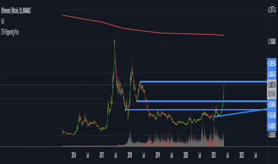 Plots the btc price at which ethereum flips bitcoin in marketcap