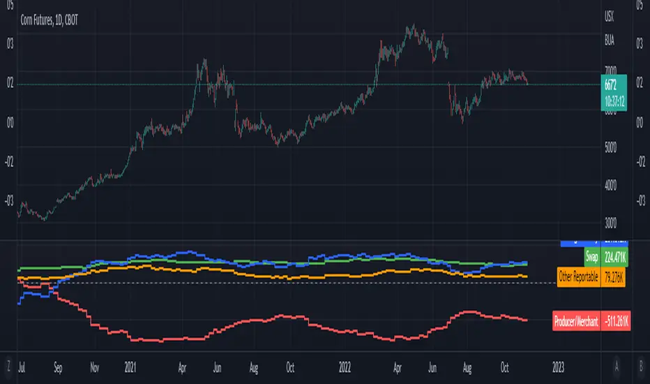 This script is very similar to COT Financial Plot indicator except that it plots the data for Disaggregated Futures