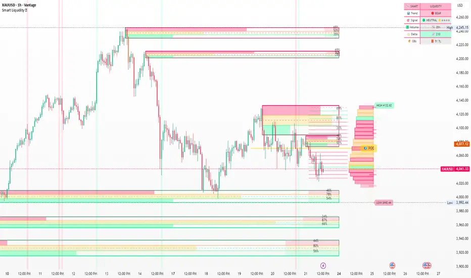 **Smart Liquidity Indicator** is an advanced technical analysis tool for analyzing liquidity and volume in financial markets. It combines several powerful analytical tools to help you make informed trading decisions.