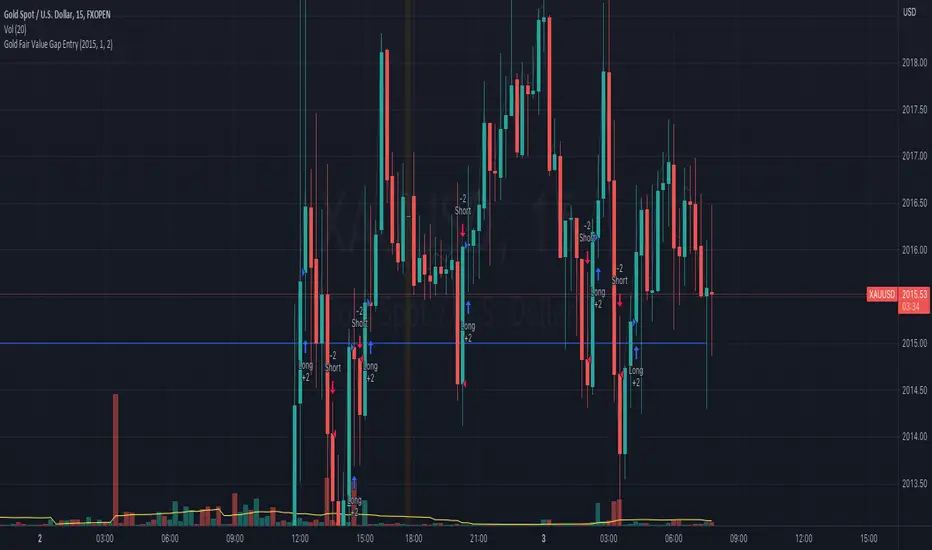 This script calculates the fair value of gold, which is set as an input parameter. It then gets the current price of gold and calculates the gap between the price and the fair value. If the gap is positive, it enters a long trade, and if it's negative, it enters a short trade.