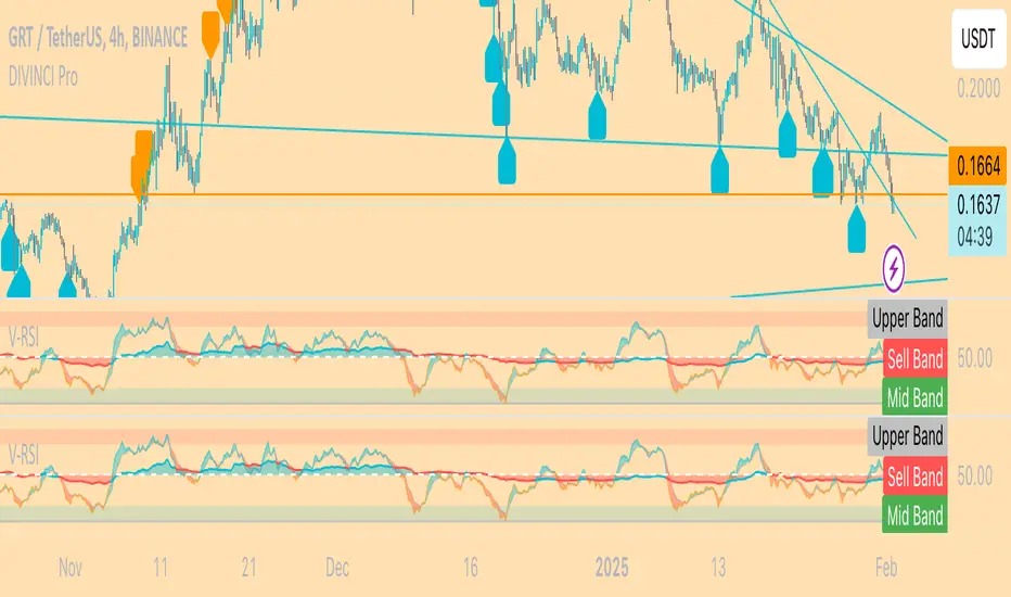 V-RSI uses values from the traditional "Relative Strength Index(RSI)" oscillator and the "On Balance Volume(OBV)" indicator and anchors them into an oscillator format. In doing so, we are given a more concrete overview of volume/sentiment data relative to the RSI for analysis of trend strength and decision making.