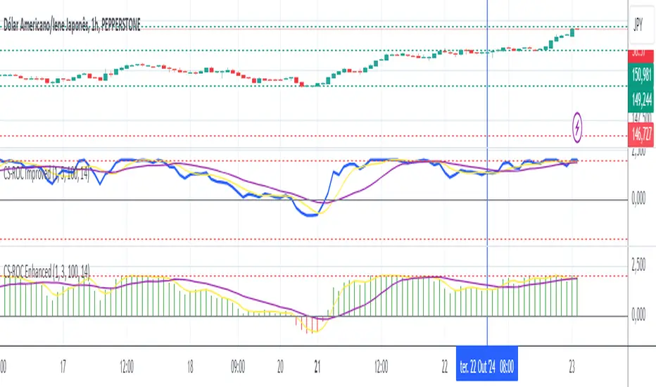 Currency Strength ROC Enhanced is a technical indicator designed to measure and visualize the relative strength of different currencies in the foreign exchange market. Using a Rate of Change (ROC) approach and moving averages, this indicator provides valuable insights into the dynamics of currency strengths.