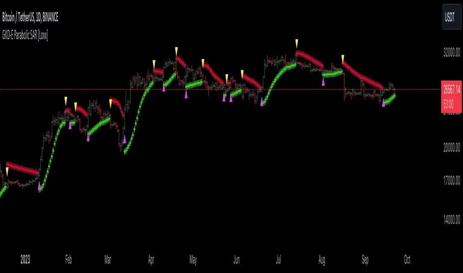 The Giga Kaleidoscope GKD-E Parabolic SAR is an exit module included in Loxx's "Giga Kaleidoscope Modularized Trading System."