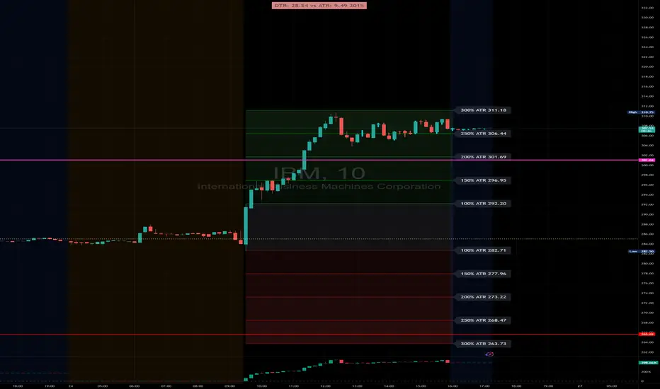 This indicator is designed to help traders gauge the day's volatility in real-time. It compares the current Daily True Range (DTR)—the distance between the session's high and low—to the historical Average True Range (ATR).