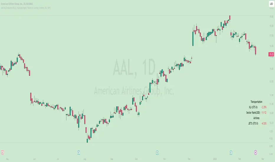 Sector Rank: Ranks the sector ETF against other major sectors (e.g., "3/12" means the sector is ranked 3rd out of 12).