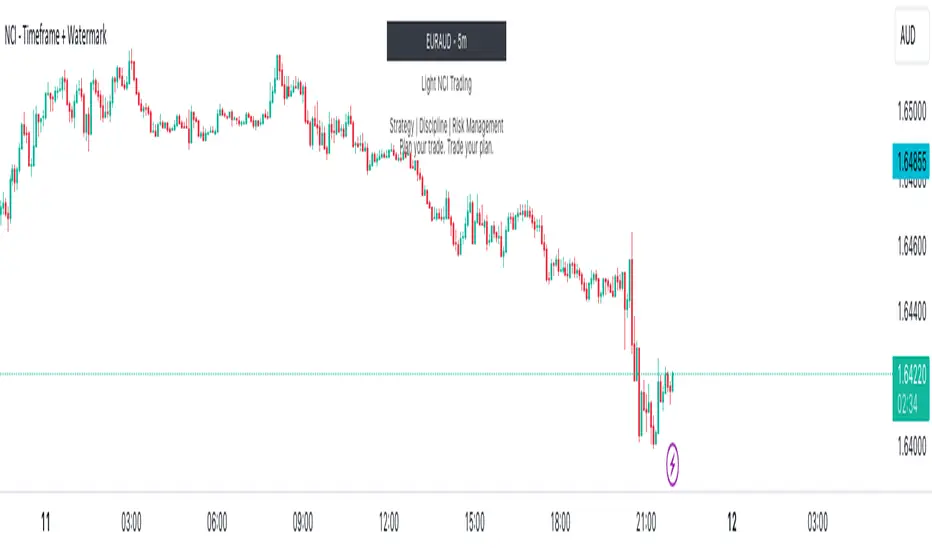 Timeframe Display: Stay informed of the current chart's timeframe, neatly displayed alongside your chosen watermark. Whether you're analyzing trends in minutes, hours, or days, this feature keeps you oriented without cluttering your workspace.