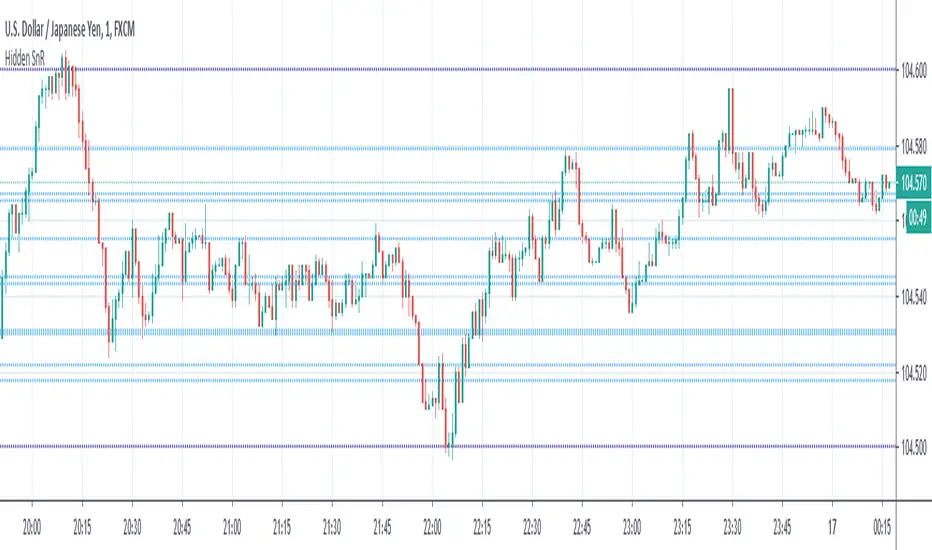If you search the internet, you won't find much about these types of resistance and support levels. Hidden levels are SnR levels calculated based on some psychological patterns and sometimes it's unbelievable that the chart responds to these levels.