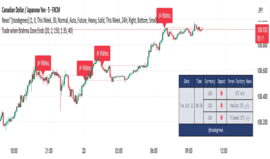 **“The Vishnu Zone”** indicator identifies the exact moments when the **Brahma Phase ends** — signaling that the expansion has completed and the market is likely to enter a more stable, tradable state.
