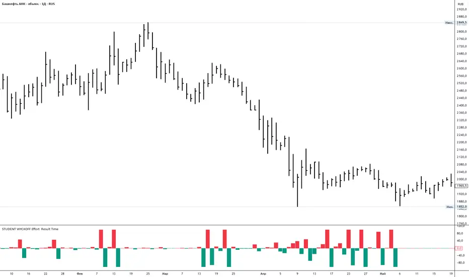 This tool measures how *hard* the market is working on every bar and compares the current effort with the previous one. It is built in the spirit of Wyckoff: first we look at the effort (volume), then at the result (price progress), and only after that compare them.