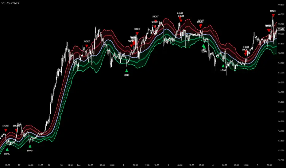 Inner Bands = Basis ± (ATR × Multiplier × 0.5) → The "retest zone"