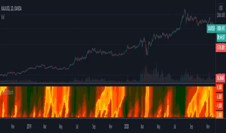 In the late 1950s, George Lane developed stochastics, an indicator that measures the relationship between an issue's closing price and its price range over a predetermined period of time. To this day, stochastics is a favored technical indicator because it is easy to understand and has a high degree of accuracy in indicating whether it's time to buy or sell a security. In “Introducing SwamiCharts” in Mar, 2012, authors John Ehlers & Ric Way presented the use of SwamiCharts to better visualize market activity using an indicator that presents a heatmap visualization. The authors provided descriptions for the construction of SwamiCharts using Stochastic indicator.