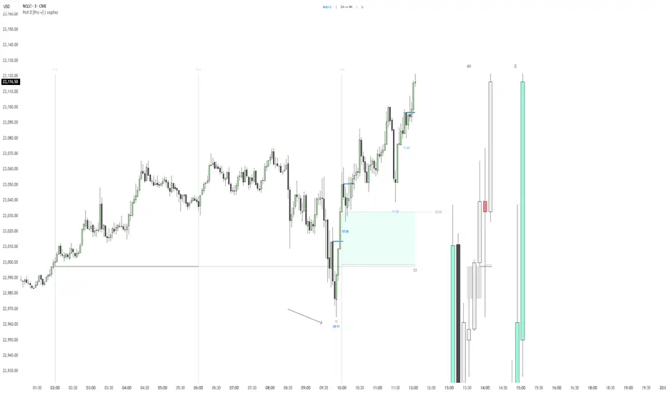 Detects sweep-and-reversal sequences within HTF candle boundaries. The profiling system identifies when price sweeps the immediate previous candle's extreme then confirms directional commitment after a candle close.