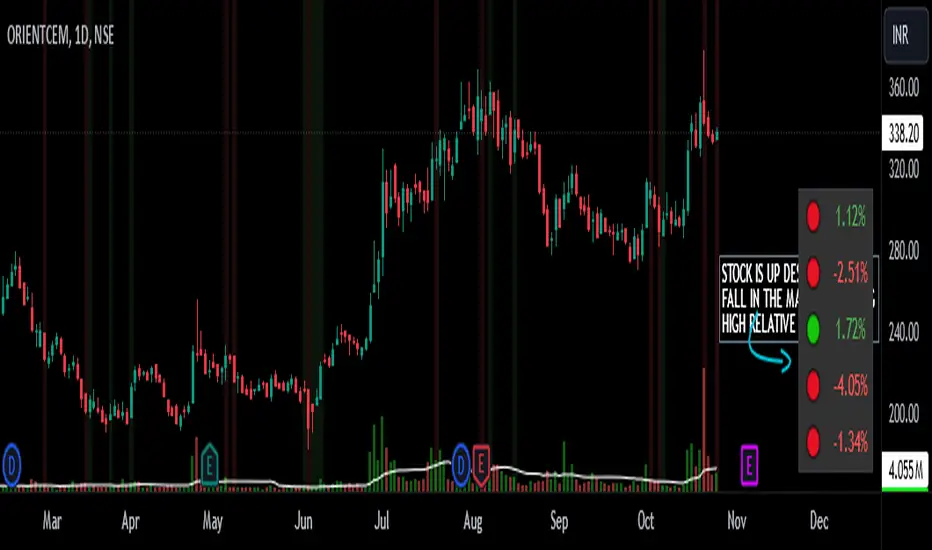 This script basically allows you to mark the days on all charts when markets are extremely volatile. The aim is to check the relative strength of a stock on days when markets are in panic.