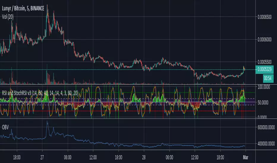 This is version 3 RSI and StochRSI are improved by visualizing the cross-trend wave on the indicator, as well as by highlighting the colors of the bands and take into account the joint intersection of RSI and StochRSI at different settings. Enjoy using it!