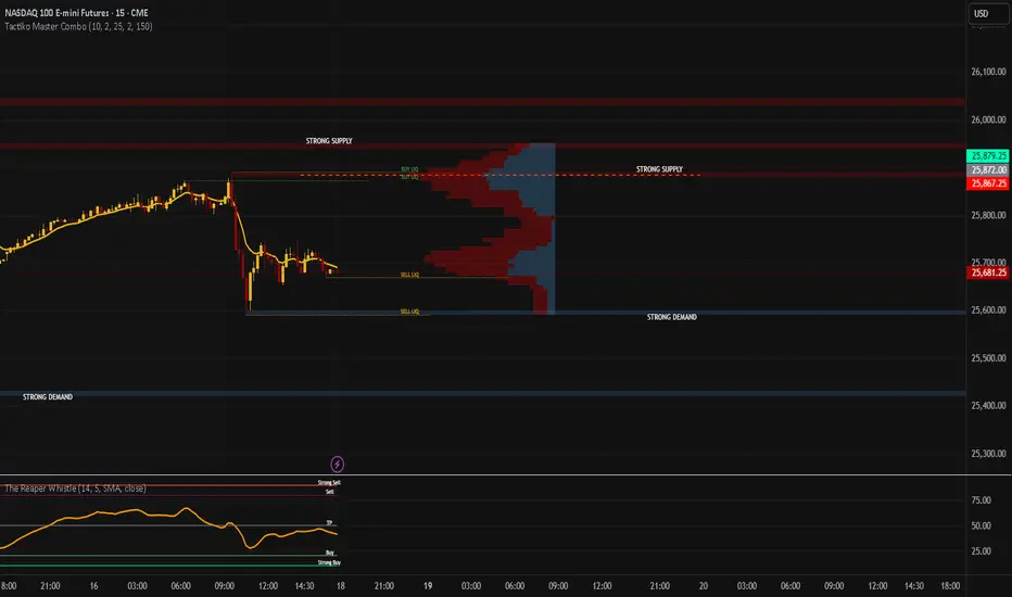 The Tactiko Master Combo is an institutional-grade toolkit designed to consolidate essential Supply and Demand (SMC) metrics into a single view. It features dynamic Buyside and Sellside liquidity detection, pivot-based Supply and Demand zones with Points of Interest (POI), and a weighted Volume Profile with a real-time Point of Control (POC). This indicator is designed to help traders identify areas of high-volume interest and liquidity confluences while maintaining chart clarity.