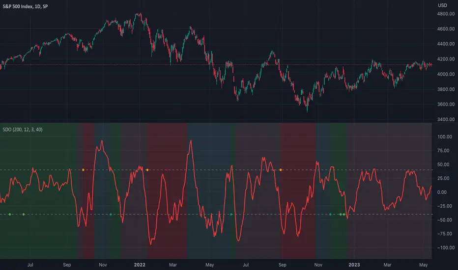 This script implements the stochastic distance oscillator (SDO), a momentum indicator introduced by Vitali Apirine in an article featured in TASC's June 2023 edition of Traders' Tips. The SDO is a variation of the classic stochastic oscillator and is designed to identify overbought and oversold levels, as well as detect bull and bear trend changes.