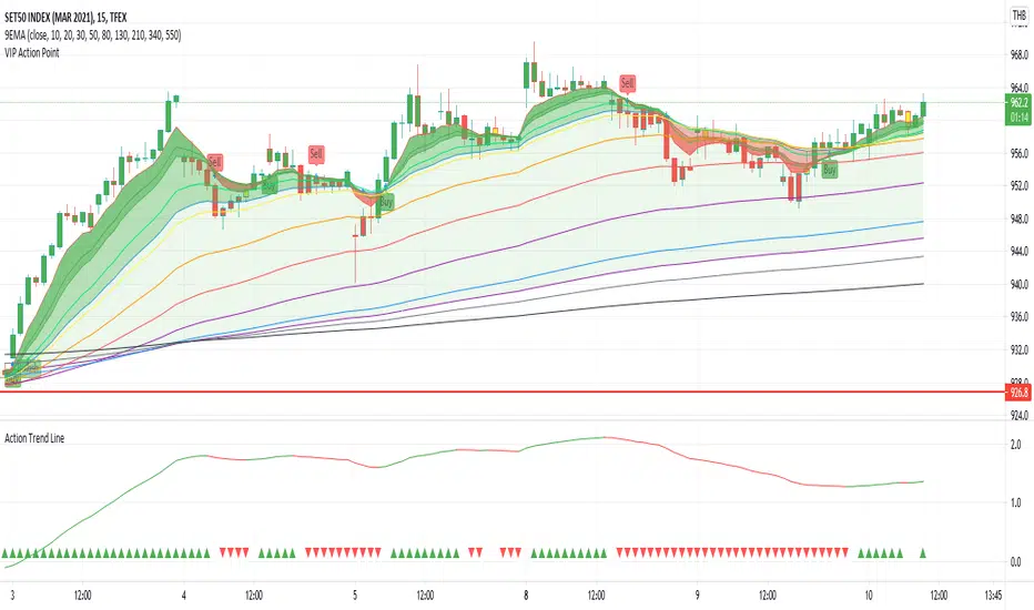 The chart show Action Trend Line, by 2 color and 2 sign at the bottom of chart.