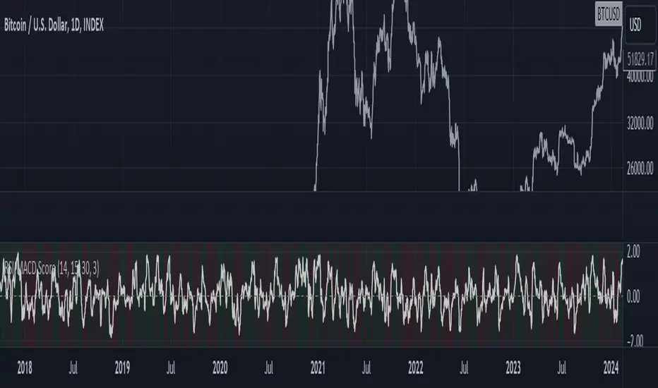 The composite score is simply the sum of the normalized RSI and the normalized MACD histogram. This results in a combined score that reflects both momentum (from RSI) and trend (from MACD), providing a multifaceted view of market dynamics.