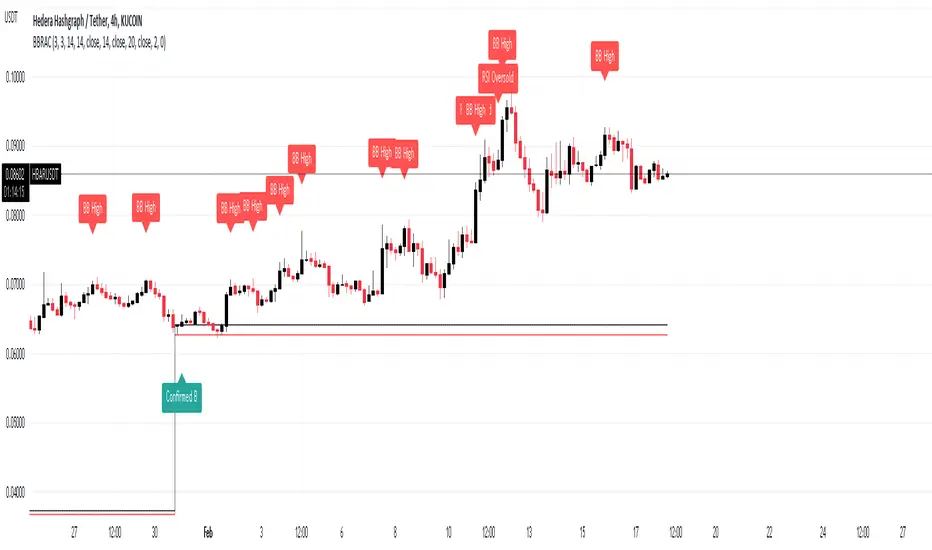 1- When candle closes above the black line [the high of culprit candle] and Stochastic RSI is in the oversold area >> "Confirmed B"