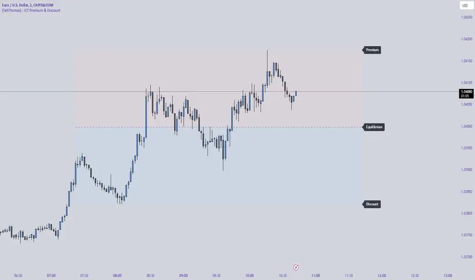 - Labels for Premium, Discount, and Equilibrium are added to help traders quickly identify these levels.