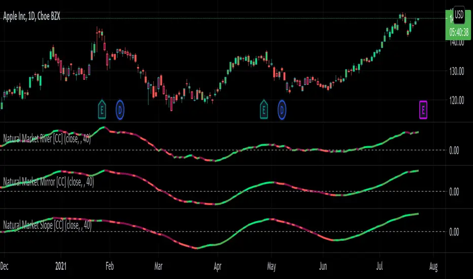 The Natural Market Slope was created by Jim Sloman and this is one of his many Ocean Indicators which I'm publishing thanks to receiving source materials from altcoinz and @tmac87. I did completely rewrite the formula for this indicator but I commented out the original calculation so you can compare or just for study purposes. I like this version better because it is very smooth and the original formula is a bit faster with response but is very choppy in comparison.