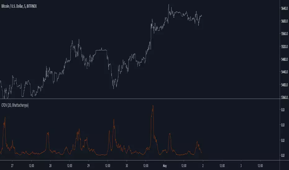 The Bhattacharyya method is another method who use a natural logarithm, this method can visually filter small volatility variation. It is defined as 0.5 * log((0.5a+0.5b)/√(ab)).