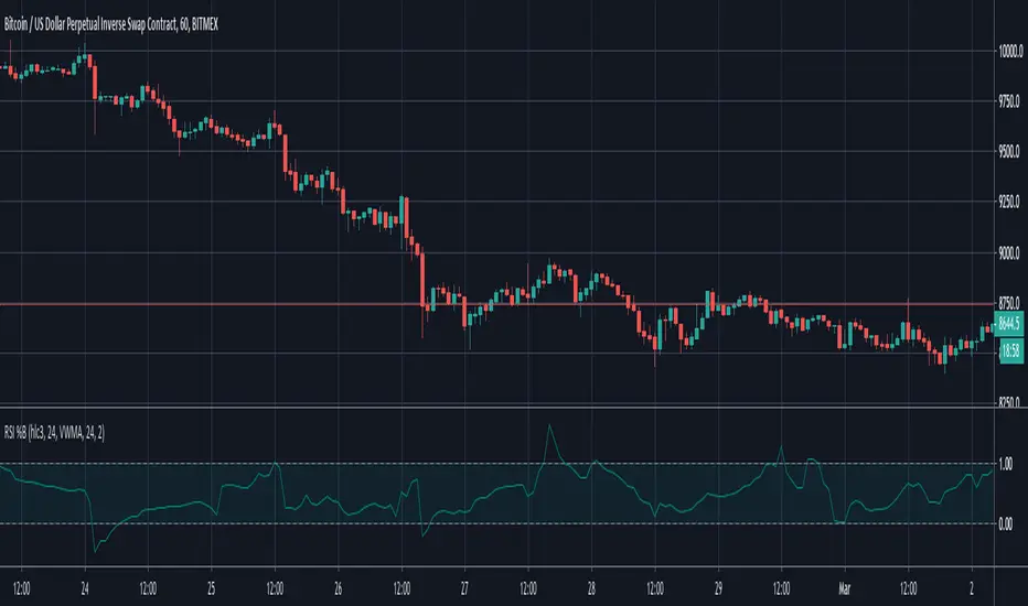 It's an RSI indicator combined with Bollinger %B. This way you just need to check if it is above 1.0 or below 0.0 (Outside Bollinger Bands). You can choose the moving average method used by RSI.