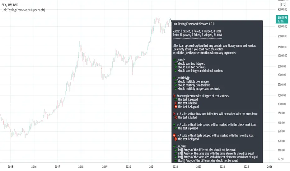 I tried to follow the APIs of testing tools/libs/frameworks I worked or work with: Jasmine (Javascript), Mocha/Chai (Javascript), Jest (Javascript), RSpec (Ruby), unittest (Python), pytest (Python) and others. Got something workable but it would be much easier to implement (and it would look much better) if PineScript had a higher-order functions feature.
