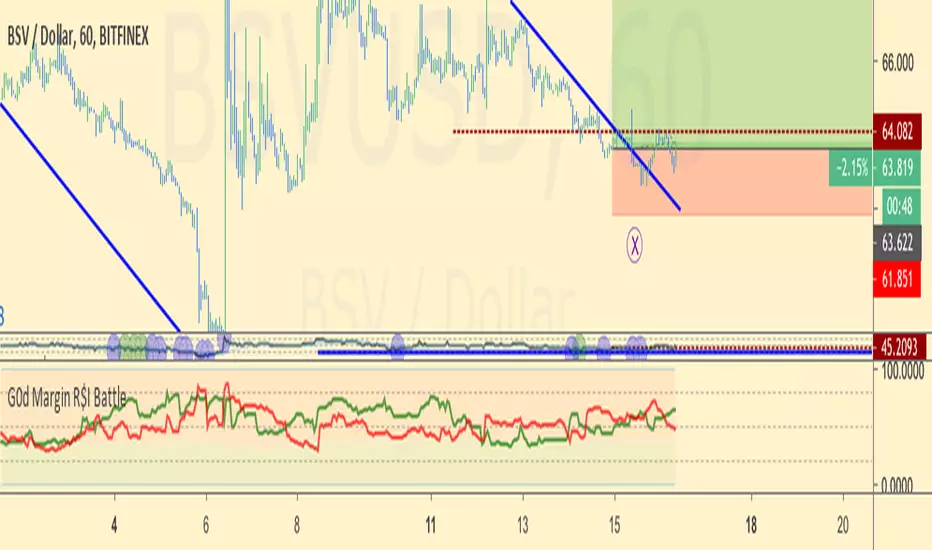 Displays RSI of both longs and shorts to gauge the short term momentum of both while also showing the ratio of Longs vs Shorts as the background.