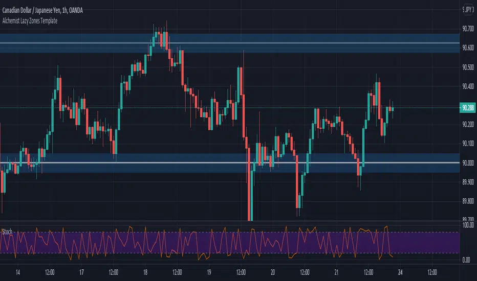 Alchemist Capital Lazy Zones is a script written to complement the trading style taught by Clover_Trading - Chris teaches a zone to zone strategy and this script aids in the technical analysis relating to this.