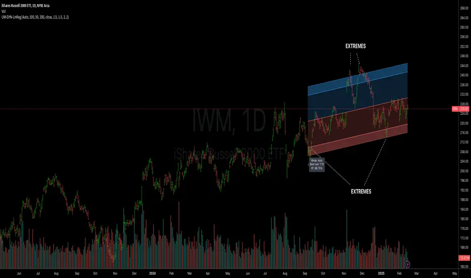 The chart I used for an example is the daily chart of IWM. I illustrated the extremes with white text. This is where I consider proactively exiting an existing position and/or begin looking for a reversal.