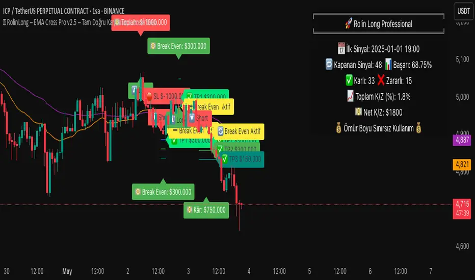 EMA Cross Pro v2.5 | True PnL Tracking + Break Even System