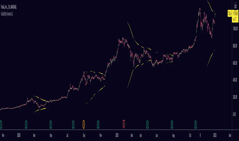 Using the contracting phase of what are basically bollinger bands and some fancy coloring, this indicator draws funnels to which show tightening ranges and doesn't take up too much screen space unless you want it to.
