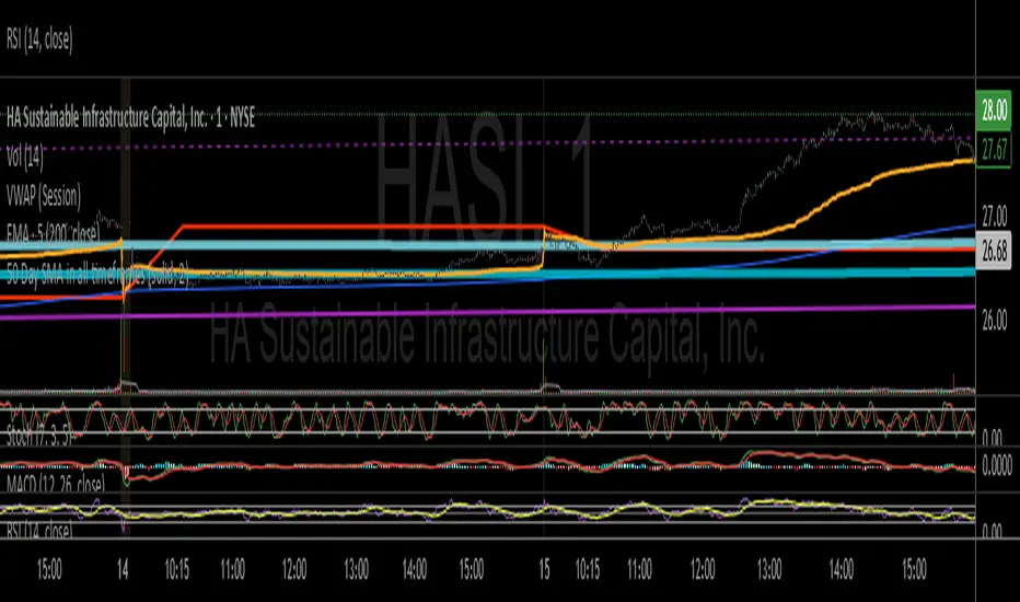 This script displays a 50 day SMA that displays correctly on all timeframes and adjusts when the chart is enlarged or reduced. Line color, style, etc are user adjustable. Default is blue thin line.